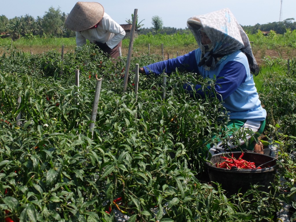 Petani cabai di Kulon Progo sedang memetik cabai. (Foto: Tagar/Harun Susanto)