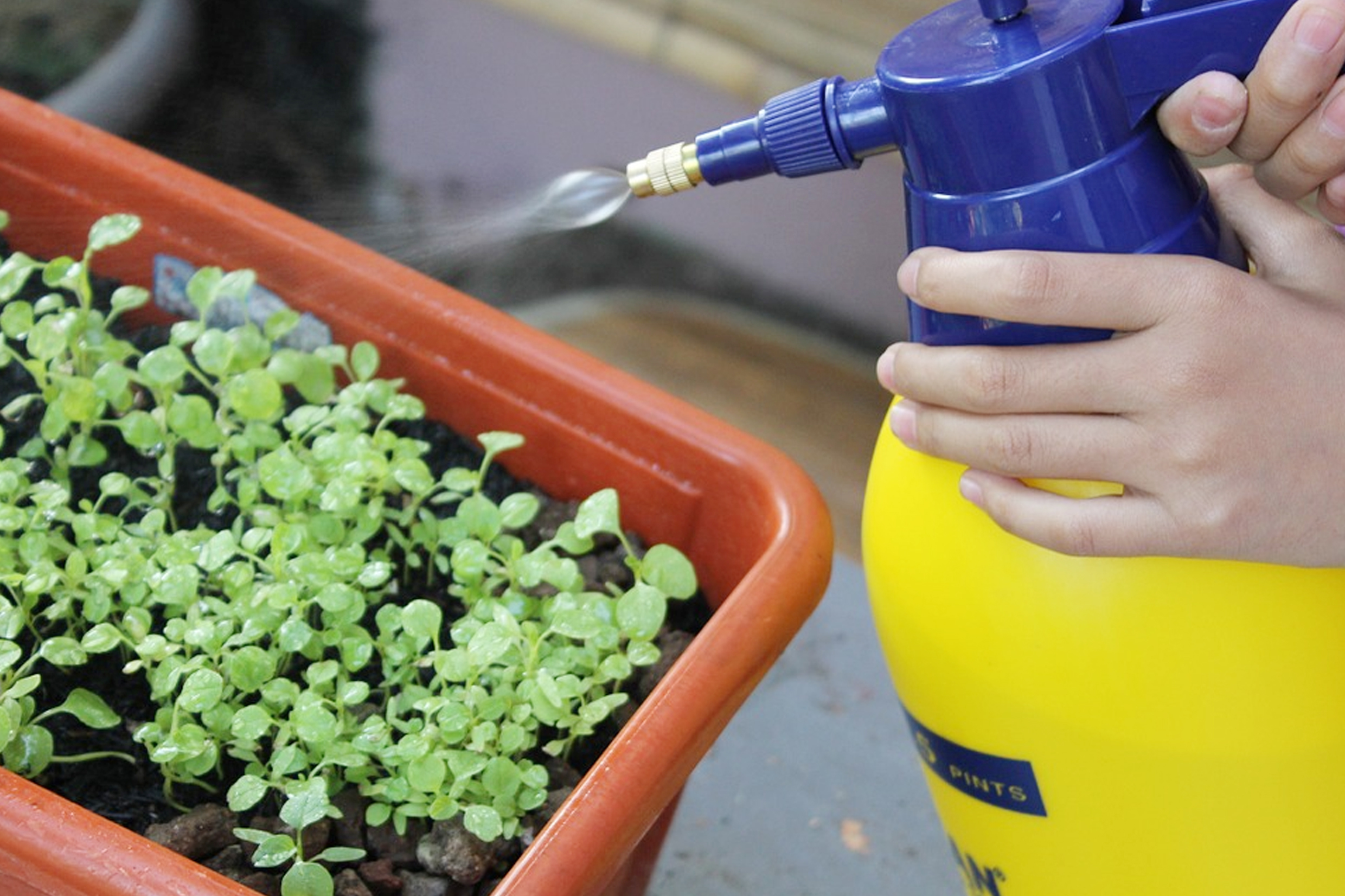Tutupi biji dengan tipis lapisan tanah sekitar 0,5–1 cm, jangan terlalu dalam karena bayam termasuk biji kecil dan mudah kesulitan menembus tanah tebal. Setelah itu, siram tanah secara lembut menggunakan semprotan halus agar biji tetap lembap.