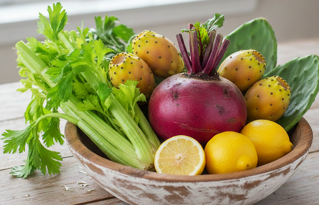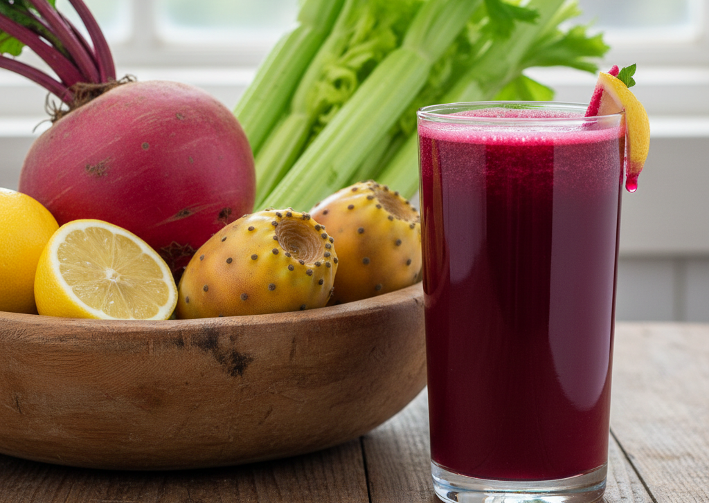 Jus Alami dari Bit, Kaktus Nopal, Lemon, dan Seledri: Pendukung Detoks Tubuh dan Energi Sehari-hari