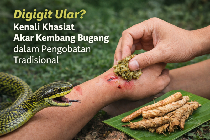 Gigitan ular merupakan kondisi berbahaya yang membutuhkan penanganan cepat. Dalam tradisi masyarakat, beberapa tanaman seperti akar kembang bugang pernah digunakan sebagai ramuan sederhana untuk membantu menangani luka gigitan ular.