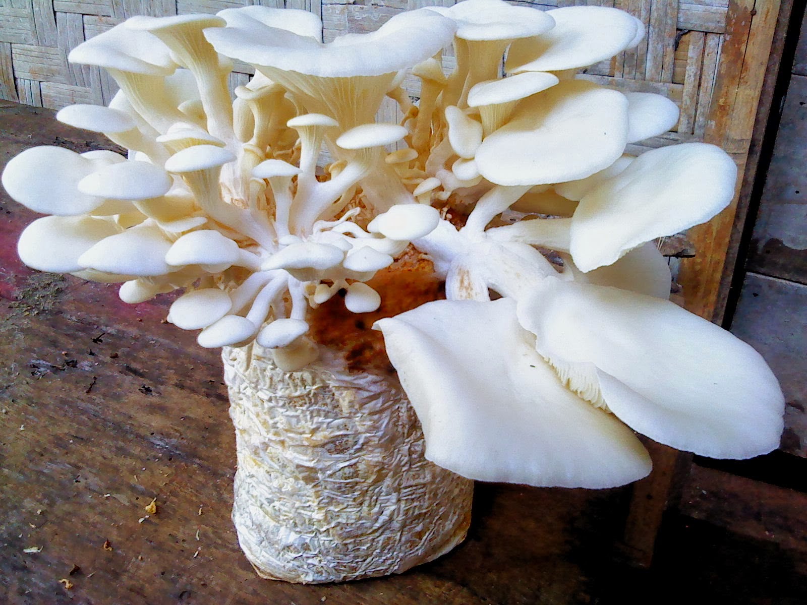 Jamur tiram memiliki ciri khas berbentuk seperti kipas dengan warna putih hingga krem. Jika Anda merawatnya dengan baik, jamur ini dapat dipanen berkali-kali dari satu baglog.