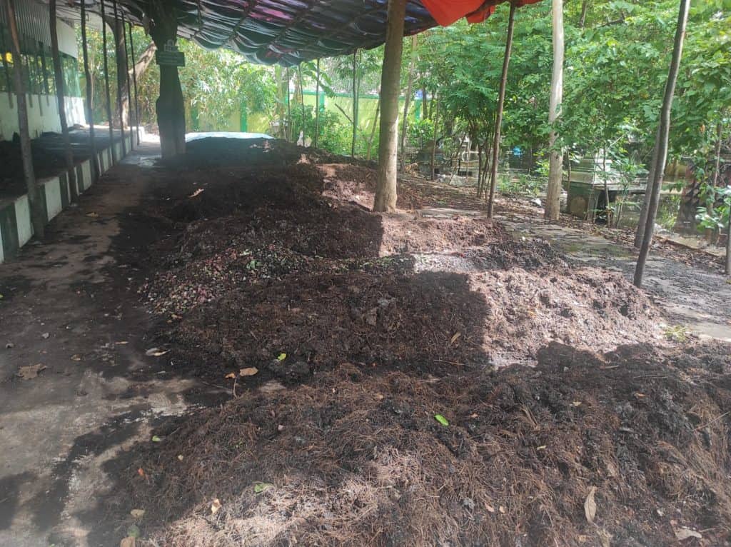 Kedelapan, setelah proses fermentasi selesai, bahan kompos akan mengalami perubahan warna dan tekstur. Batang pisang menjadi lebih gelap, lembut, dan tidak berbau menyengat. Pada tahap ini, pupuk organik siap digunakan.