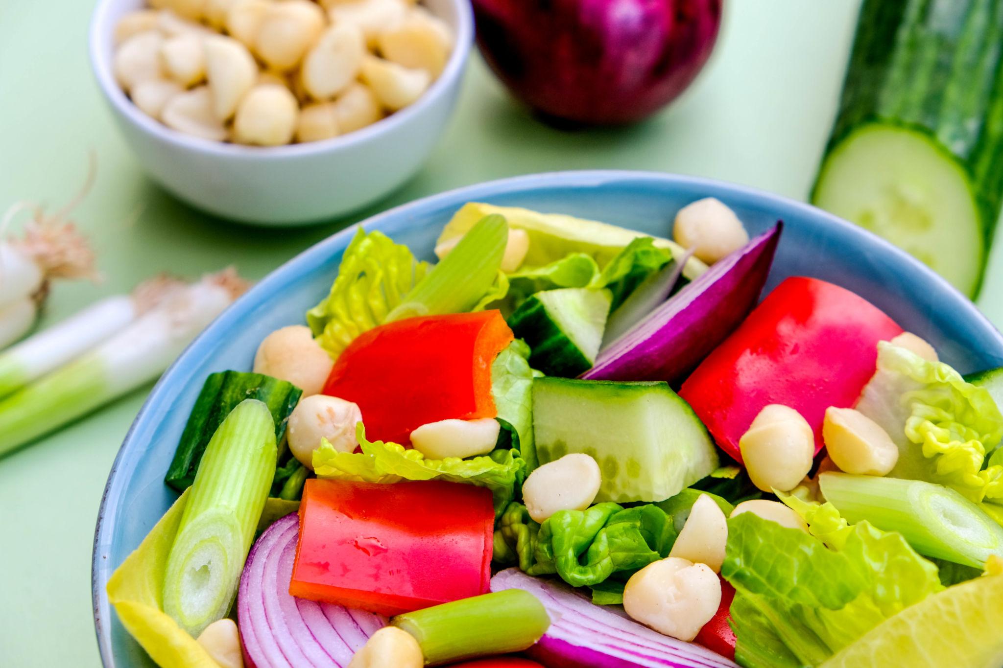 Selain itu, Anda bisa mencampurkan macadamia ke dalam salad. Cara ini membuat menu lebih variatif dan bergizi.