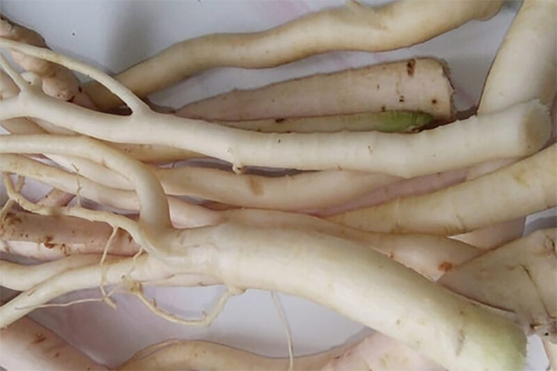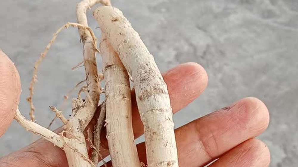 Akar yang baik biasanya memiliki warna cokelat muda dan tekstur yang keras.