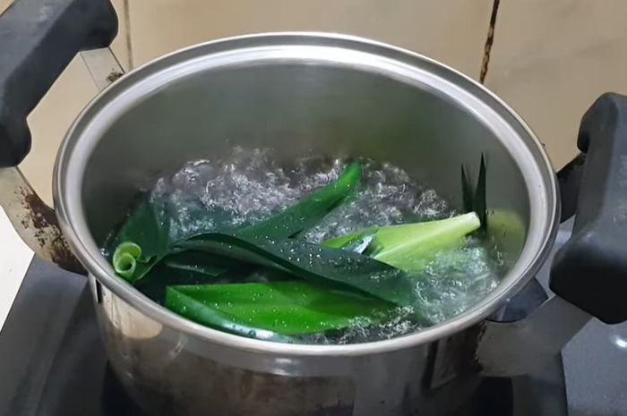 - Kemudian, rebus daun suji dan serai hingga air tersisa 1 gelas.