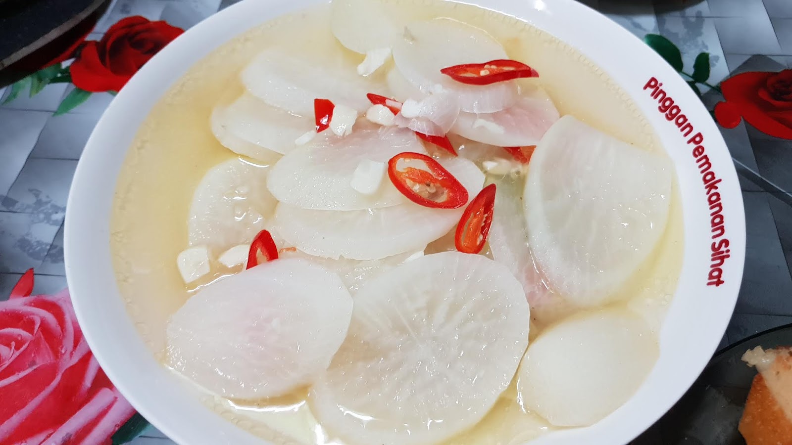 Masak lobak putih bersama sayuran lain dalam sup hangat. Konsumsi saat cuaca dingin atau ketika tubuh terasa lelah.