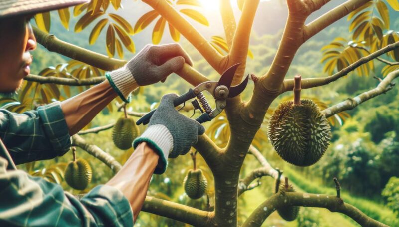 Manfaat utama pruning pada tanaman durian muda adalah membentuk arsitektur tajuk yang kuat dan seimbang.