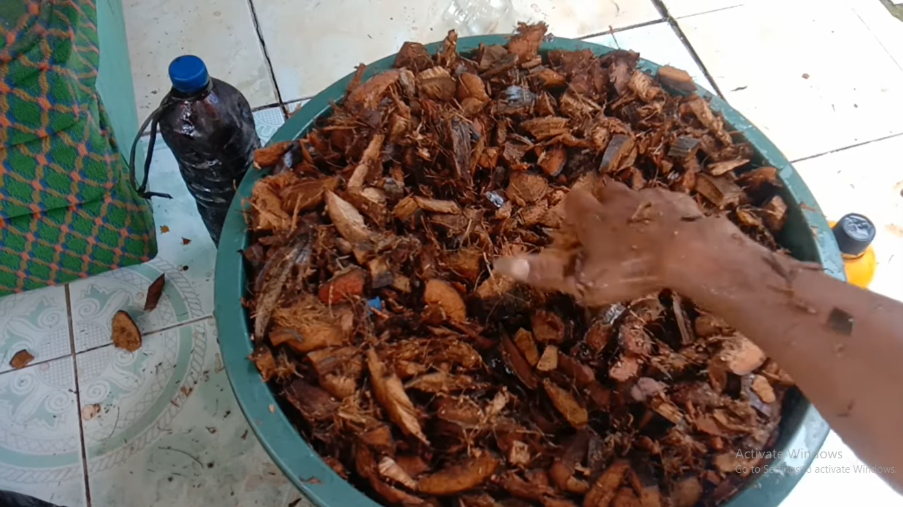 Pertama, Anda harus mencacah sabut kelapa menjadi bagian kecil. Semakin halus potongannya, semakin cepat proses fermentasi berlangsung.