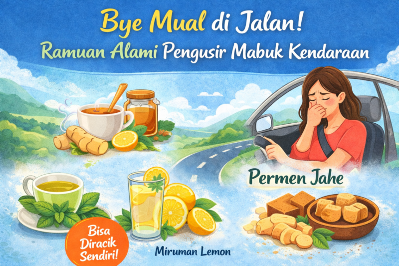 Mabuk kendaraan memang menyebalkan, tetapi Nurul bisa mengatasinya dengan cara alami. Jahe, mint, lemon, hingga chamomile bisa membantu menenangkan lambung dan saraf. Kuncinya, siapkan ramuan sebelum perjalanan dan kombinasikan dengan kebiasaan duduk yang tepat serta pola makan teratur.