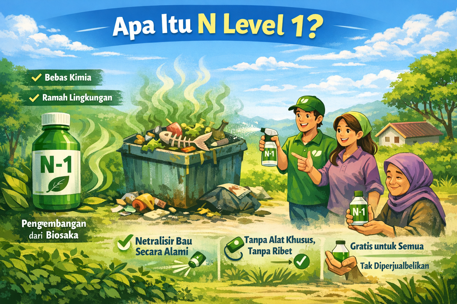 N Level 1 atau N-1 merupakan pengembangan dari konsep Biosaka. Berbeda dengan produk kimia pembersih atau penghilang bau pada umumnya, N-1 bekerja dengan pendekatan alami.