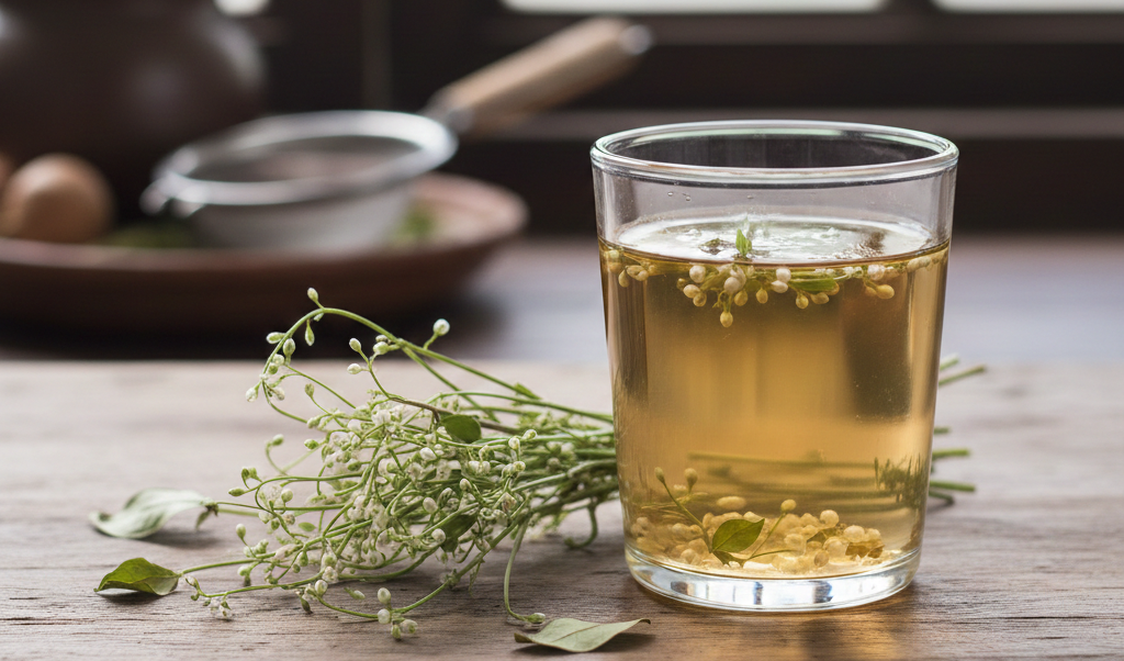 - Rebus 15–60 gram rumput mutiara dengan 4 gelas air hingga tersisa 2 gelas.